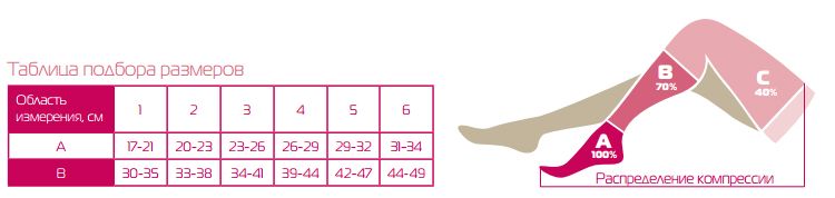 легания ноги. Подбор размера изделия в соответствии с показателями прилагаемой таблицы.